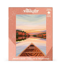 Capture the quiet beauty of a sunrise paddle with Canoeing at Dawn, a tranquil 500-piece puzzle illustrated by Calgary, Alberta artist Kelsey Voss. Inspired by Kejimkujik National Park in Nova Scotia, this serene scene features a lone canoe gliding through glassy water, framed by autumn trees and a pastel sky.