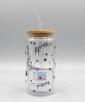 This stylish 16oz glass can cup is the perfect companion for your favourite beverage. Featuring a glass straw and bamboo lid, this high quality cup will make sipping drinks a breeze!