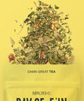 Moringa, Mate, Lemon, Cinnamon, Orange, Strawberry leaves, Butterfly blue pea flowers, Safflower and Calendula Petals, Natural flavors (Organic Compliant)