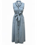 Effortless style meets practical design with this classic denim button-down dress.