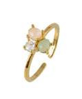 This exquisite ring showcases a beautiful blend of rose quartz and green aventurine, elegantly accented with sparkling cubic zirconia. Crafted from hypoallergenic brass and plated with 18kt gold, this ring combines both style and comfort. Elevate your jewelry collection with this enchanting piece that radiates grace and sophistication!