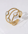 👀 Features a trio of glossy enamel accents wrapped around a gold band