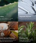 Glycerin, Sodium Lauroyl Glutamate, Organic Aloe Barbadensis (Aloe Vera) Leaf Juice, Sodium Cocoyl Isethionate, Glyceryl Caprylate/Caprate, Propanediol, Polyglyceryl-3 Betainate Acetate, Citrus Aurantium Dulcis (Orange) Peel Oil, Limonene, Aspergillus Ferment, Panthenol, Arginine, Mentha Piperita (Peppermint) Oil, Rosmarinus Officinalis (Rosemary) Leaf Oil, Citrus Aurantium Bergamia (Bergamot) Fruit Oil, Salvia Sclarea (Clary Sage) Oil, Citric Acid