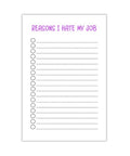 Perfect for jotting down notes and venting about reasons you hate your job in a fun and snarky way.