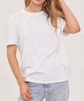 The Victoria t-shirt is part of our Icon Series, a collection of classic silhouettes made exceptional by the women who wear them. It's made of a cotton jersey fabric that has been specially washed for a perfectly lived-in look. Features include a crew neckline and relaxed fit.