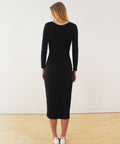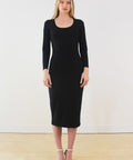 Our Barbie dress has a scoop neckline and long sleeves. It features a soft feel, thanks to stretch rib knit fabrics certified by OEKO-TEX®. This dress is intended to be fitted and contours your shape.
