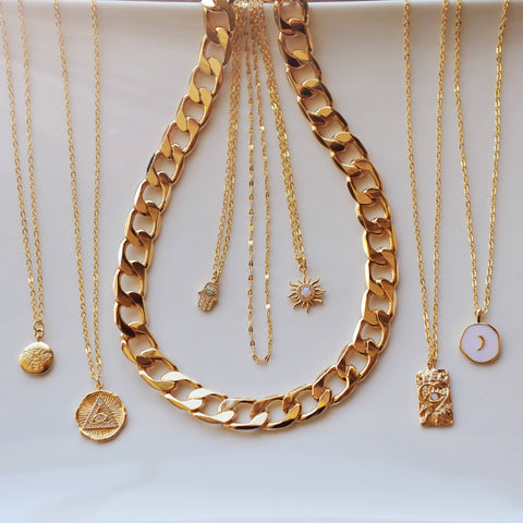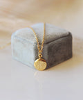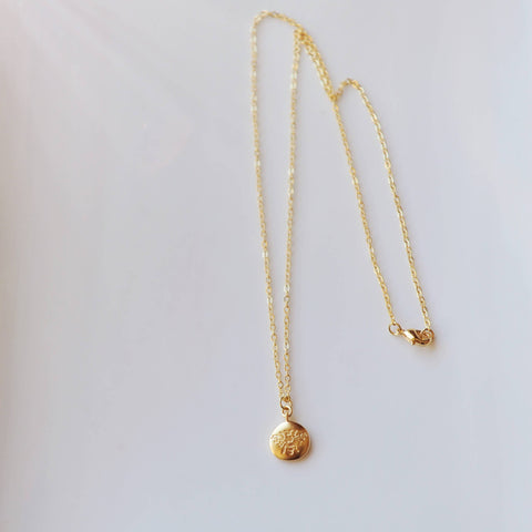 Charm: 10mm Material: Gold plated brass 18” 16k gold plated chain