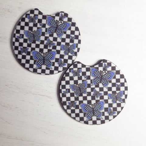 Tidal Wave Designs Checkered Butterflies Car Coasters