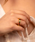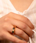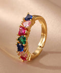 A parade of sparkling heart-shaped stones in every color of joy, this ring is your little wearable rainbow. Perfect for adding a pop of color and love to any outfit, because one heart is never enough.