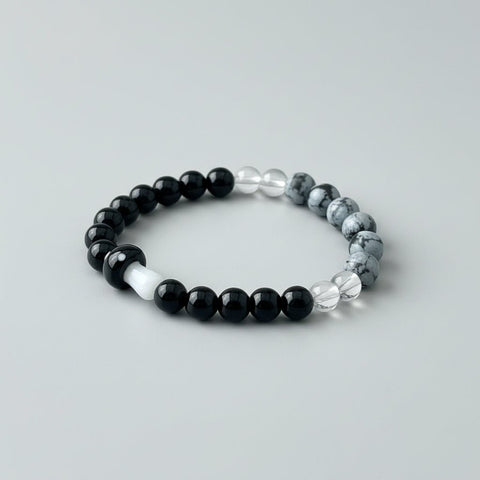 Snowflake Obsidian, Clear Quartz, & Faceted Onyx.