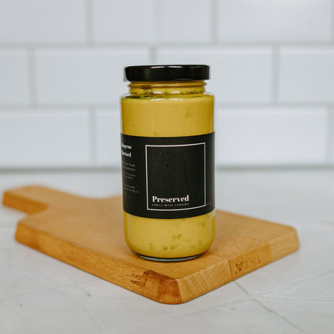 Our Jalapeño Mustard brings the heat with a bold blend of spicy jalapeños and tangy mustard. Perfectly balanced with just the right kick, it's a flavourful addition to sandwiches, burgers, and dips. Handcrafted to add a punch to every bite!
