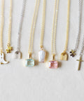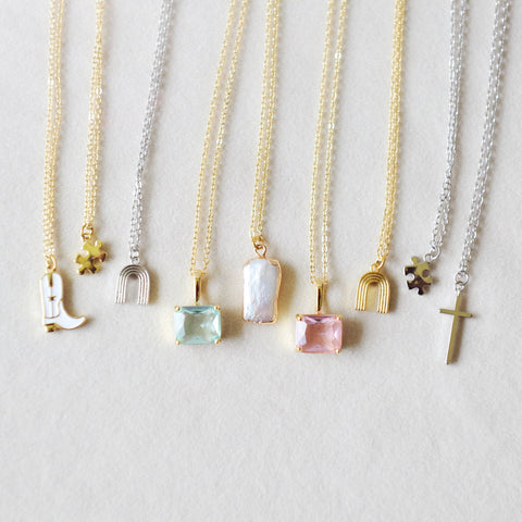 This charming pendant necklace adds a unique touch to any outfit. It's a versatile piece that suits both dressy and casual looks. Measures: 11 X 23mm charm upon 18" 16k gold plated brass chain Material: Brass, Enamel