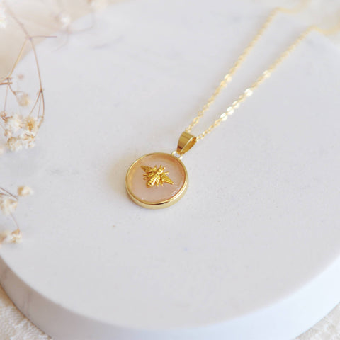 18mm Rose Quartz pendant with a beautiful bee