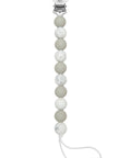 Our Lolli pacifier clip is the original silicone pacifier clip available in a range of gorgeous colors. The clip features ten rounded silicone beads for a teething-friendly design that engages and soothes. The stainless steel clip is rust-free, lead-free, and nickel-free and has plastic inserts to prevent damage to clothing—all rounded edges with no sharp corners. The clip measures 10" in length and is a great size for growing toddlers. Our clips are tested regularly at a government-accredited lab to meet and exceed safety standards.