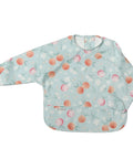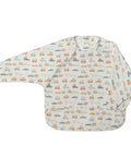 Our long sleeve waterproof bib is made with 100% eco-friendly recycled polyester with TPU coating that is waterproof, stain, and odor resistant. Standard 100 by Oeko-tex certified. Designed with an adjustable neckline with snaps and elasticized cuffs allow for a comfortable fit that grows with baby to toddler from 6 months to 3 years old.