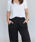 Priv LuxeFlow Trouser Pant - Pleated Pull-On Wide Leg Pant Black