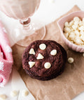 Contains: flour, baking soda, salt, golden yellow sugar, white sugar, cocoa, white chocolate chips, and chocolate chips.