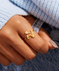 Sweet and delicate, the Rose’ Ring features two budding blooms adorned with tiny crystals on a dainty gold-tone band. Romantic, feminine, and perfect for stacking, it’s your little garden of sparkle wrapped around your finger.
