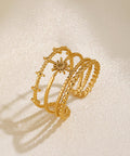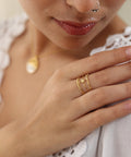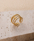 Meet the Sunbeam Cuff—your golden sidekick that’s as bold as it is breezy. With its layered glow and textured charm, this waterproof wonder keeps up with your shine, rain or radiance. Slip it on, stack it up, and let your hands do the sparkling talk.