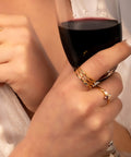 Three sparkling drops dance along a sleek golden band, adding just the right amount of shimmer to your every gesture.