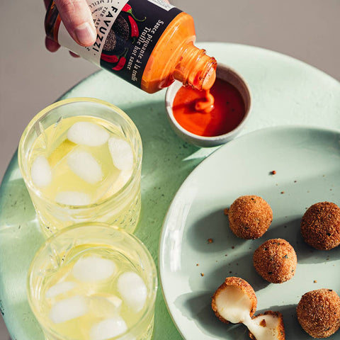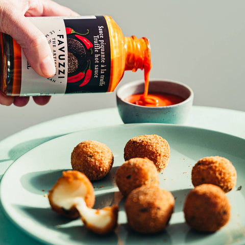 FavuzziTruffle hot sauce by Favuzzi is a unique, artisanal condiment crafted in the hills of Abbruzzo Italy. Artisans Nicola and Paola De Laurentiis have blended Italian chili peppers with summer truffles to create a mild-to-medium heat sauce that packs big flavor.
